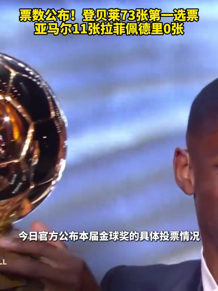 票数公布!登贝莱73张第一选票,亚马尔11张拉菲佩德里0张!