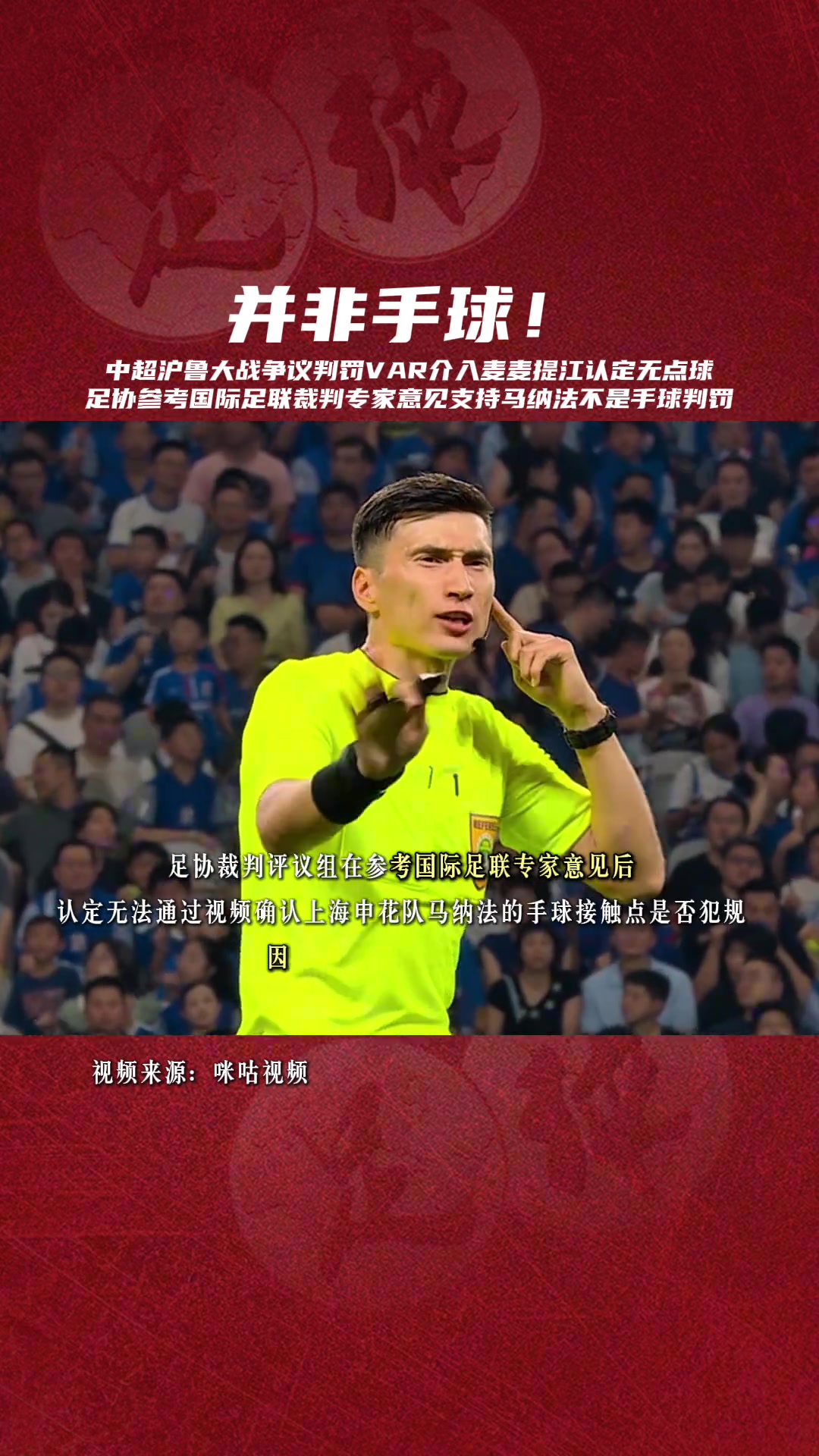 足协评议:参考国际足联裁判专家意见,支持马纳法不是手球的判罚