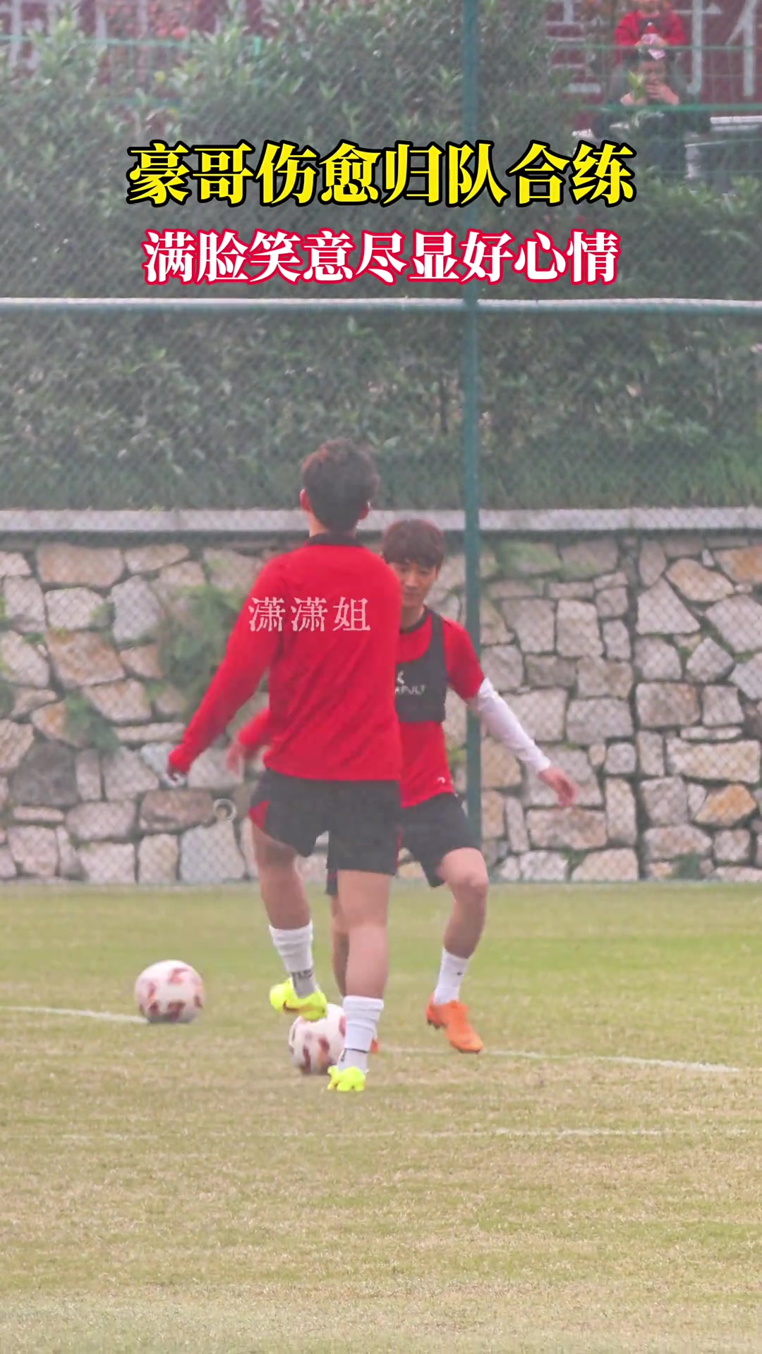 韦世豪伤愈归队合练,满脸笑意尽显好心情
