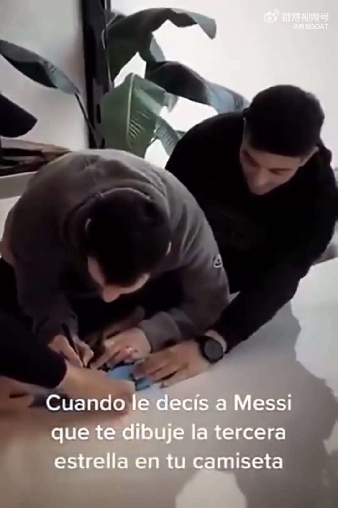 手动印钞机!名场面:梅西为球迷的二星阿根廷球衣画上了第三颗!