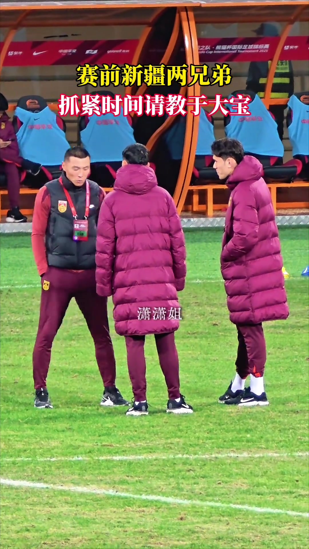 博主实拍:熊猫杯赛前,U22国足新疆两兄弟抓紧时间请教于大宝