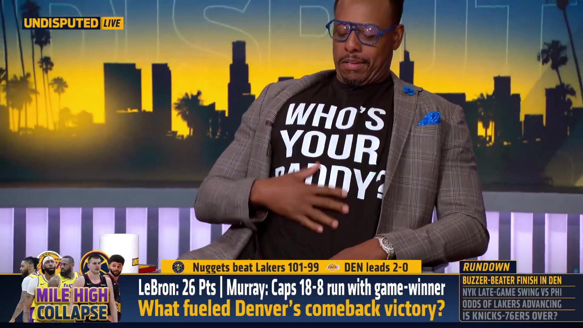 戳湖人球迷的痛处啊!!皮尔斯穿着写有“谁是你爸爸”的衣服上了节目!