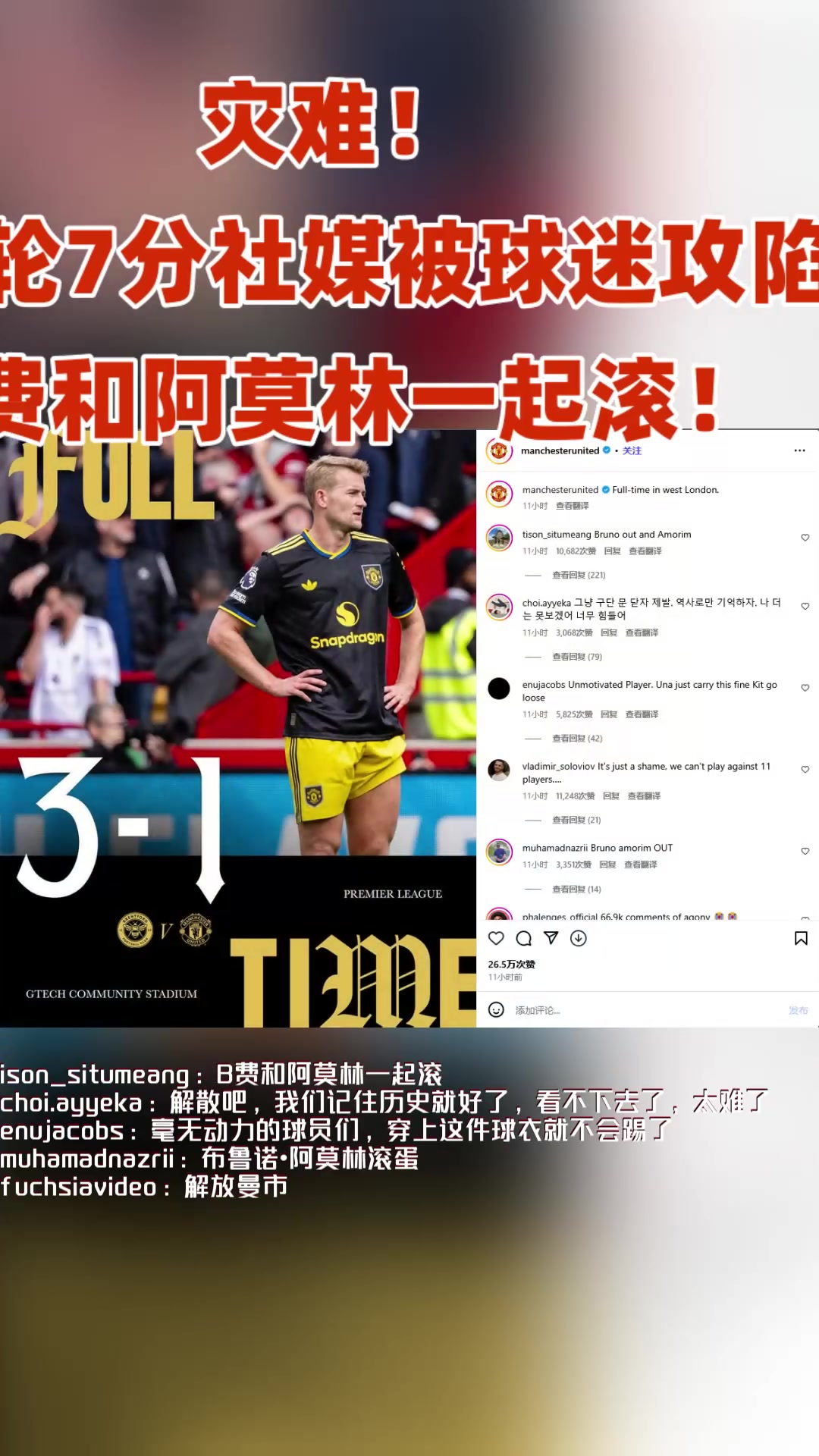 灾难!曼联6轮7分社媒被球迷攻陷: B费和阿莫林一起滚!