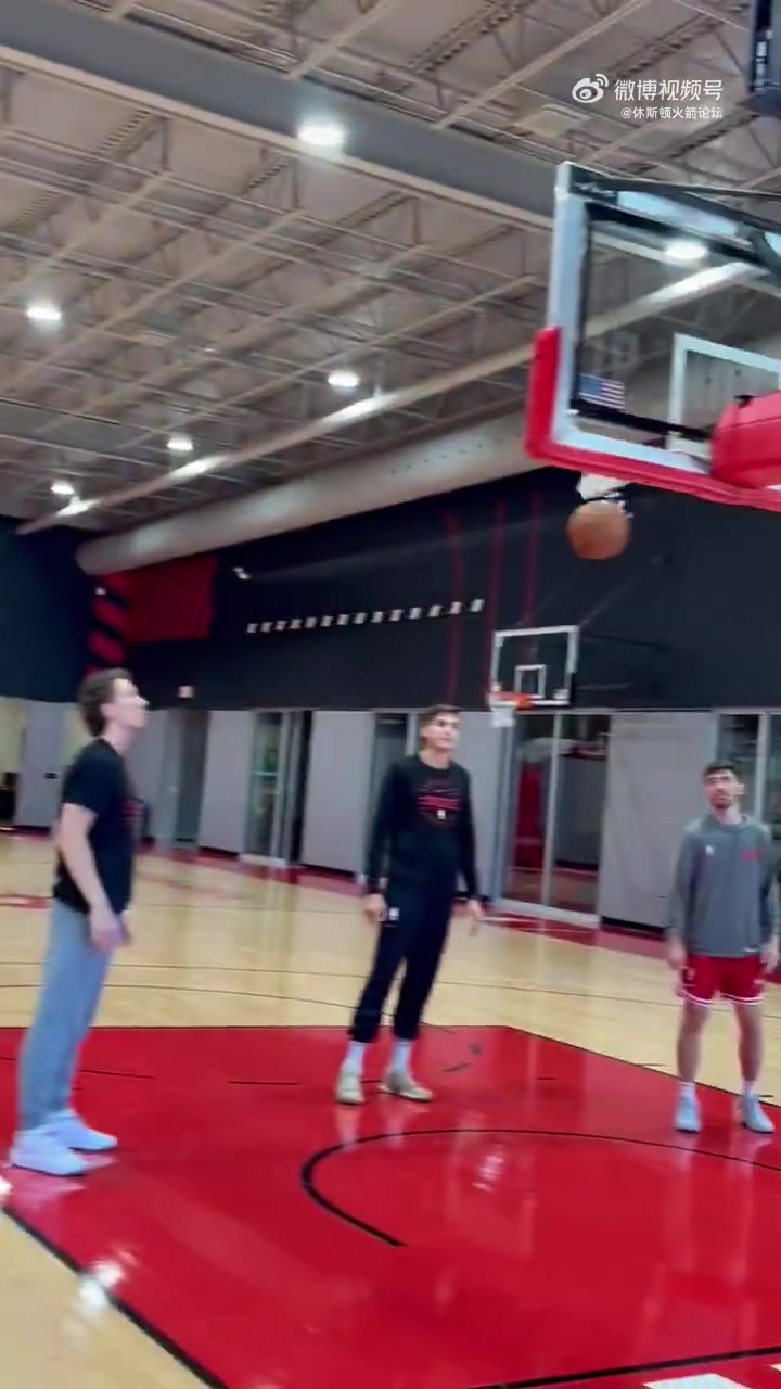 触底反弹?杨瀚森正在进行三分热身 今天扔进一个三分呗?