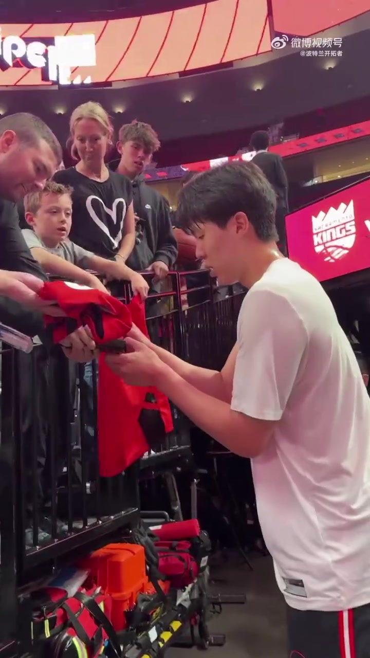 季前赛主场首秀!杨瀚森在球员通道给热情的球迷们签名~