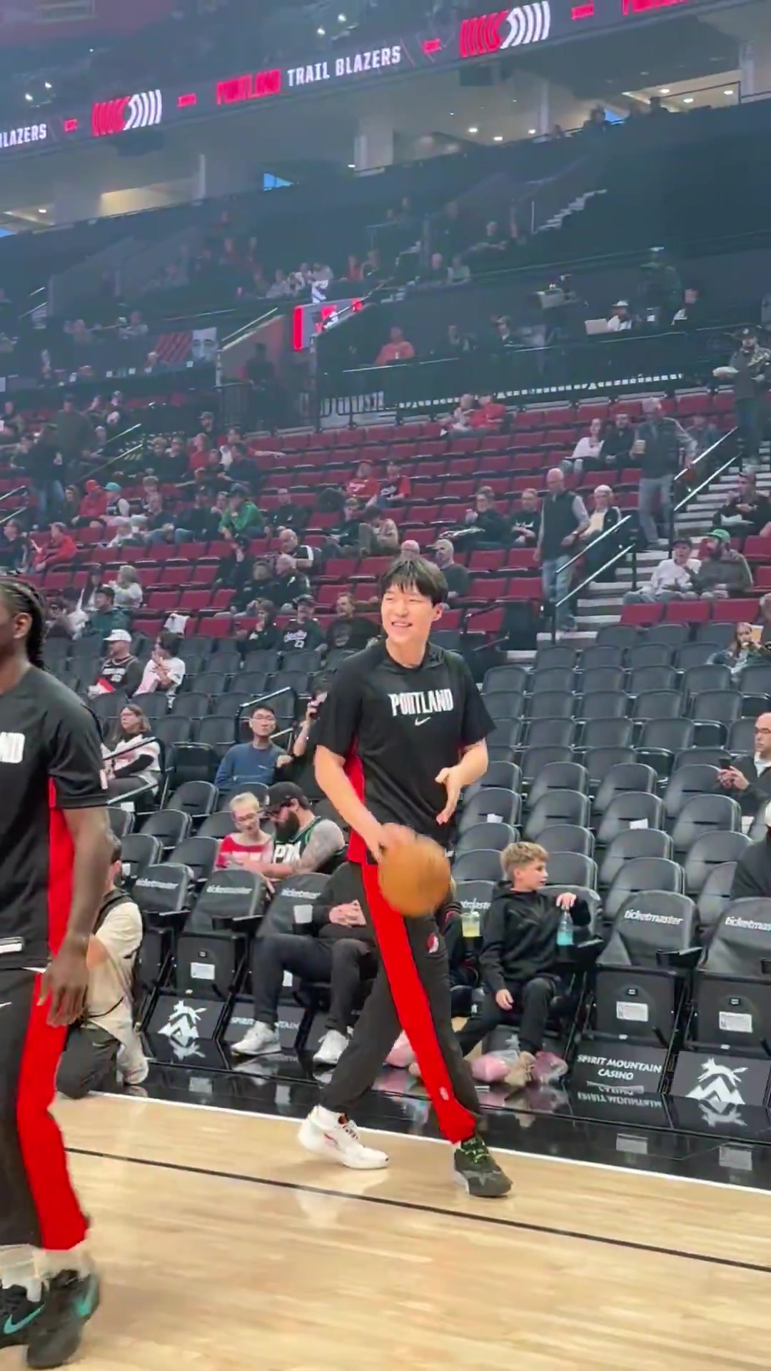 今天真牛!在波特兰的博主珠姐现场教球迷用中文说:杨瀚森牛皮~