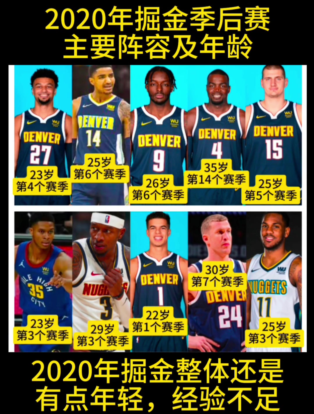 回顾2020年掘金季后赛主要阵容:穆雷&约基奇&波特仍在阵中!