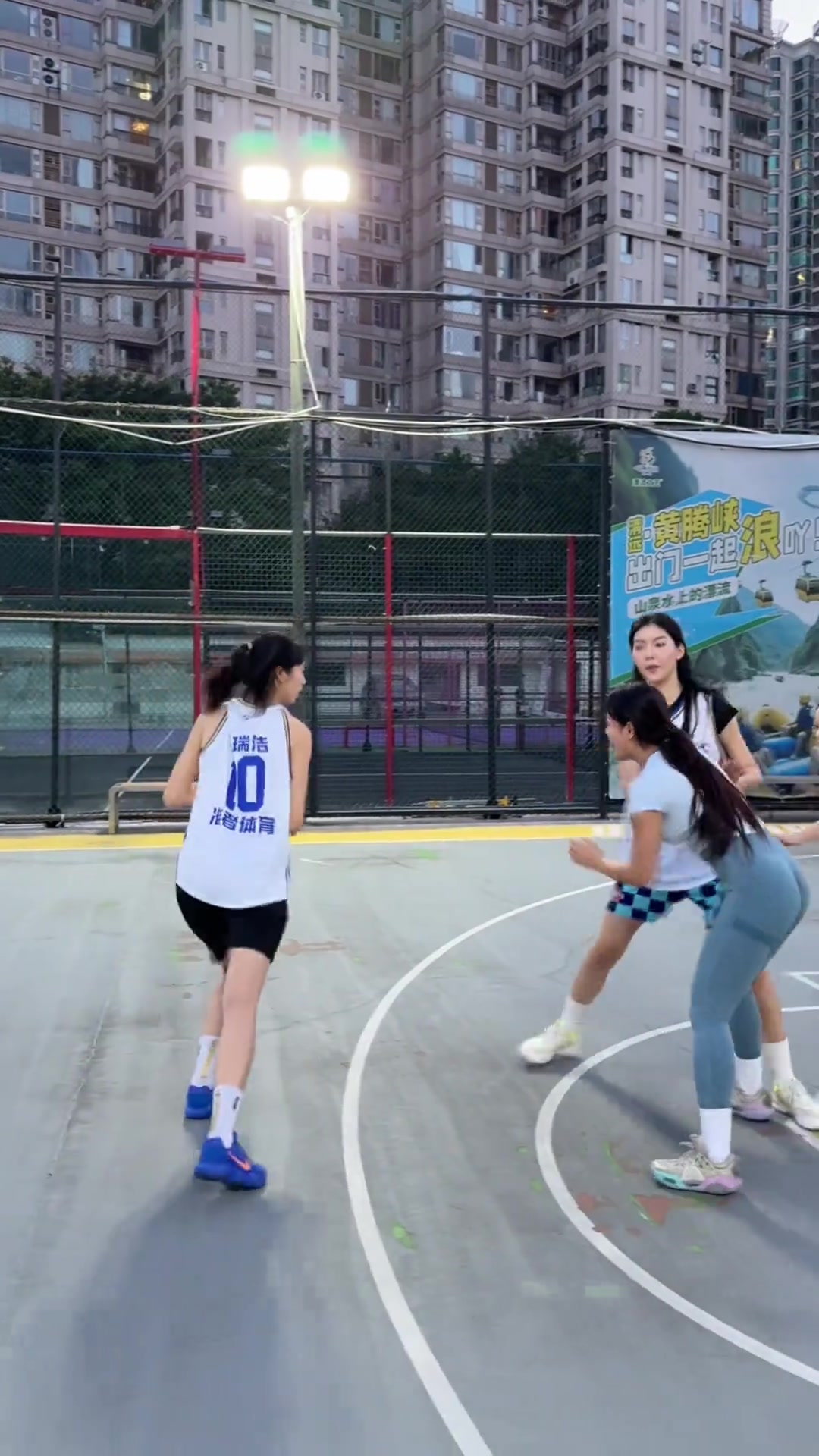 女神组队打2v2 别的不说最后一球突破左手勾手还有点东西