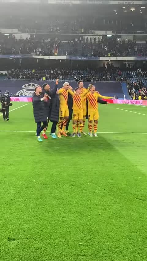 【4-0大胜皇马!巴萨球员在伯纳乌开心庆祝】
